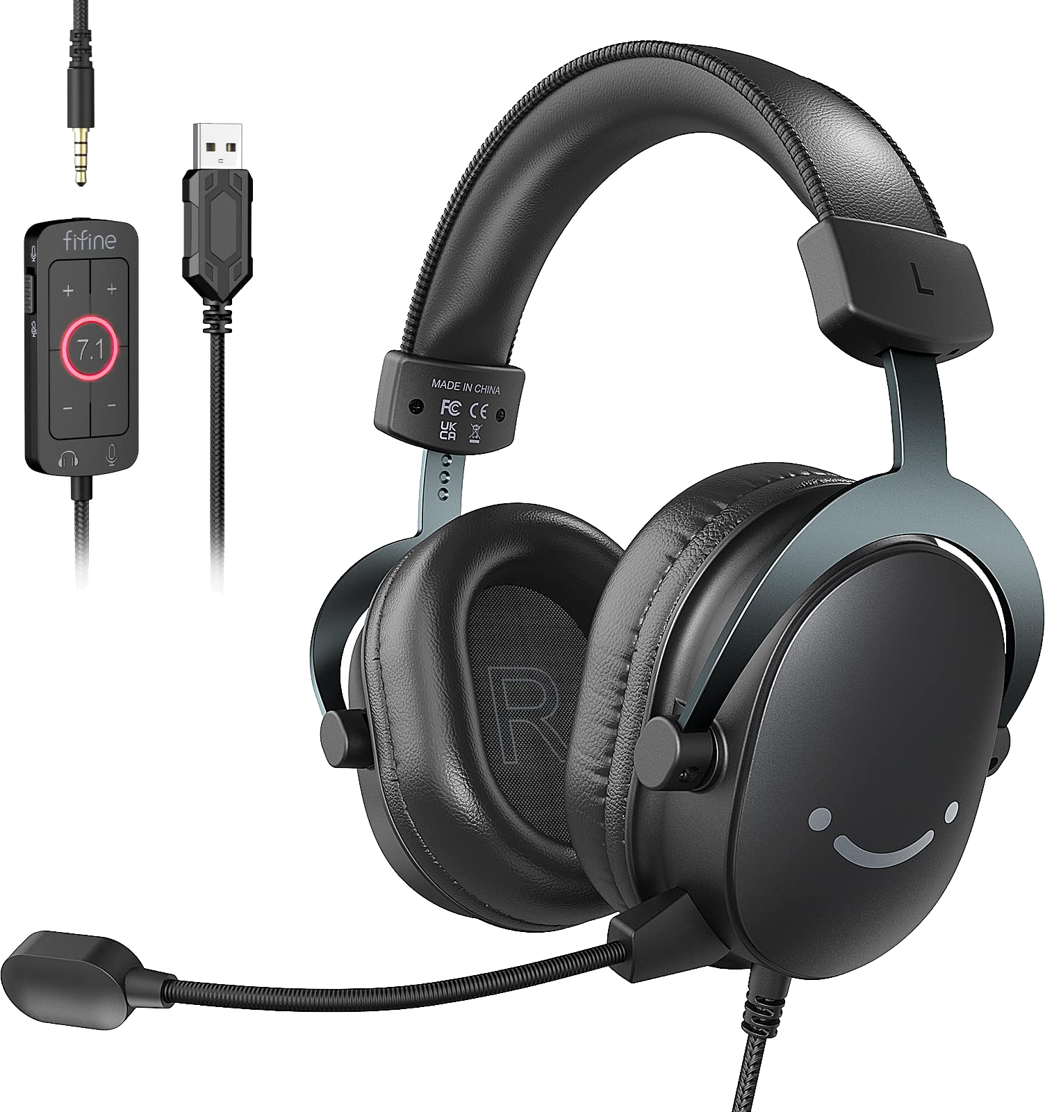 Fifine H9 | • Com fio P3 e USB-A • Mic removível • Não tem 7.1 • Almofadas de courino • Sem RGB |