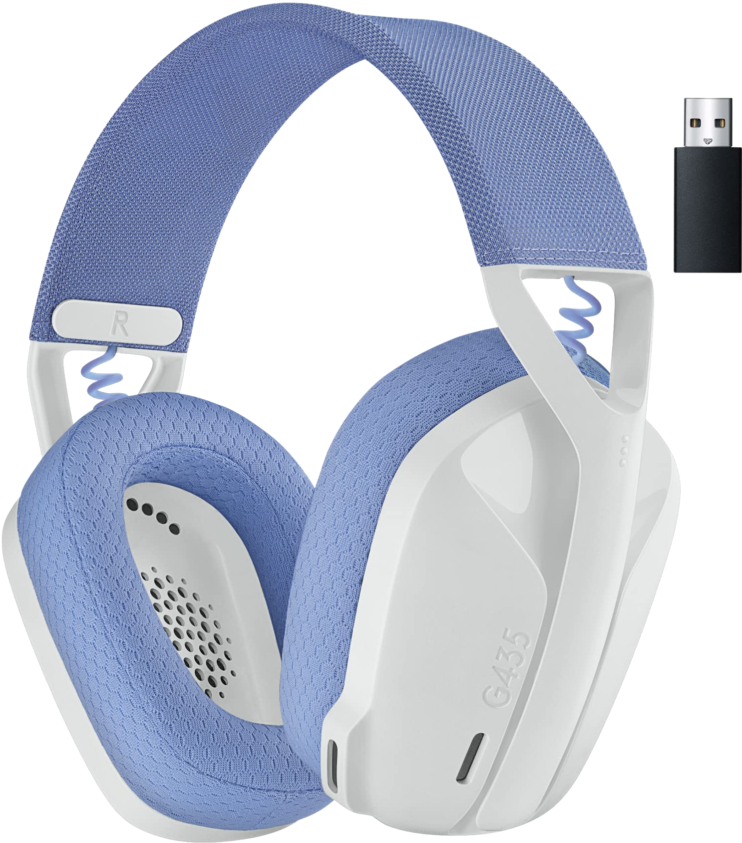 Logitech G435 | • 2.4 GHz e Bluetooth • Mic não removível • Não tem 7.1 • Almofadas de tecido • Não tem RGB |